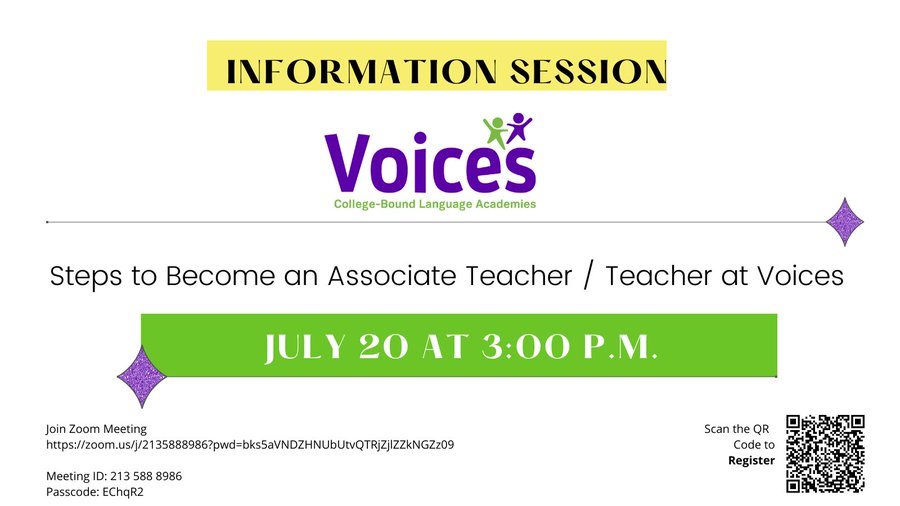 Teacher Associate Teacher Information Sessions. According to state test scores 22 of students are at least proficient in math and 32 in reading. Voices College-Bound Language Academies exist to change that.